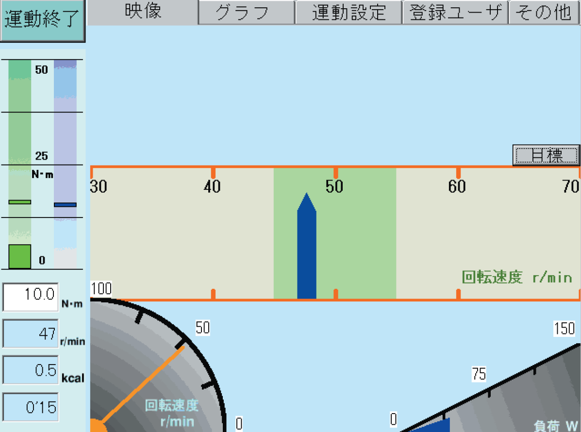 RI用メータ表示モードによる目標ペダル回転速度(r/min)の視覚化